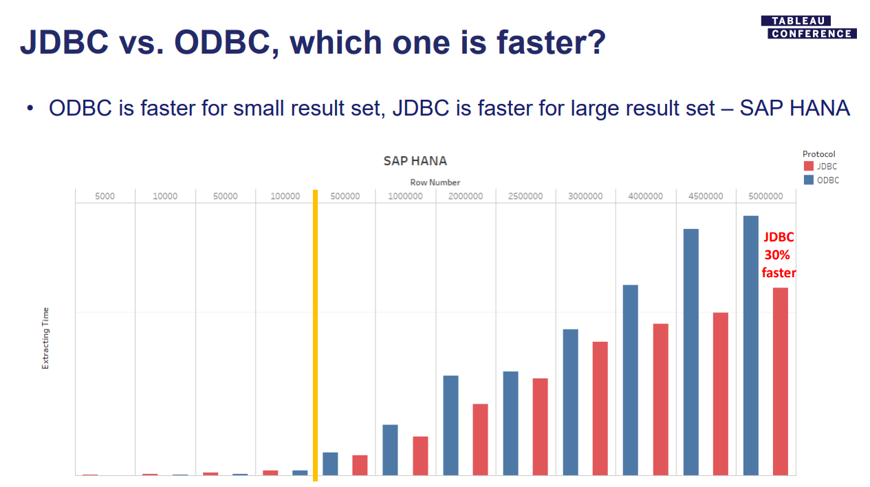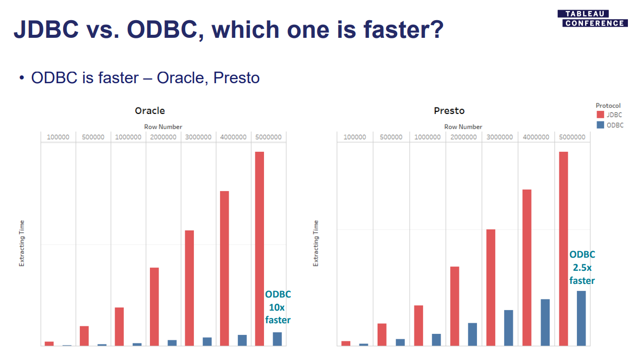 However, on Tableau’s Driver Download page, ODBC is recommended.