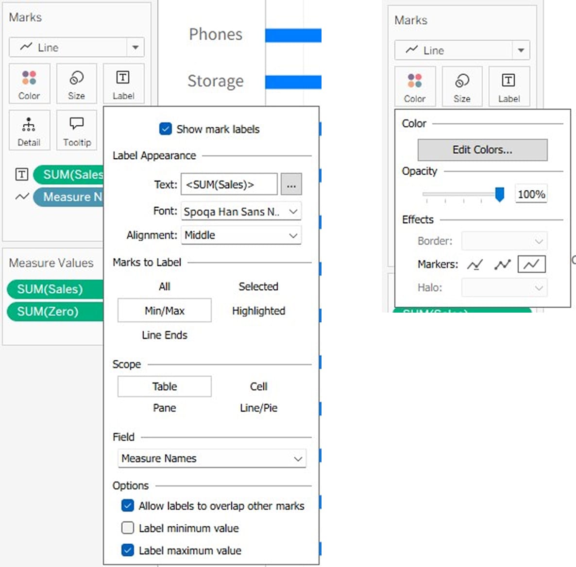 . Then, choose the third marker option under the Color mark to adjust the label appearance appropriately.